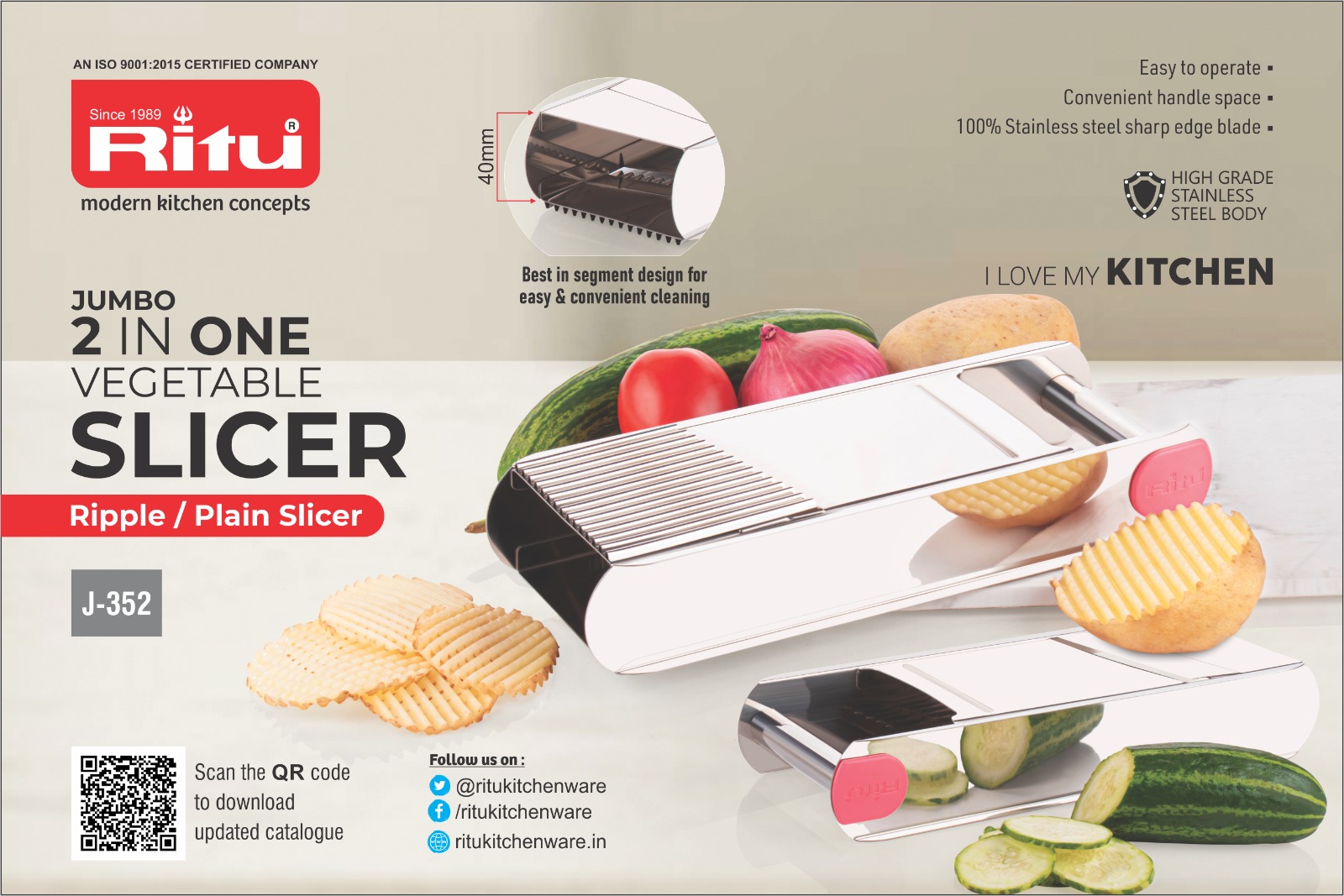 J 352 JUMBO 2 IN ONE VEGETABLE SLICER PLAIN & RIPPLE